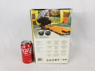 Appears unused. 23" x 74" sleeping pad, 15.3" x 12.2" pillow.