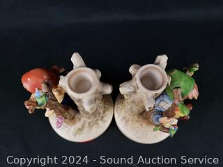 Lot #0077: Danbury Mint M.I.Hummel "Apple Tree Boy" & "Apple Tree Girl" Candlesticks w/CoA