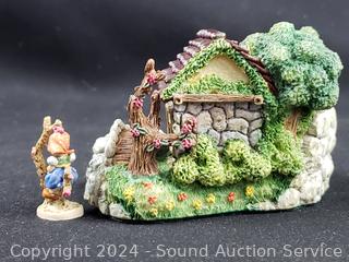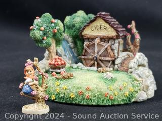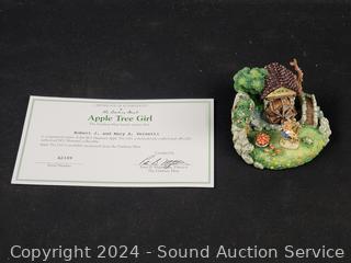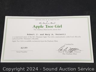 Lot #0052: Danbury Mint M.I.Hummel "Apple Tree Girl" Miniature Figure & House w/CoA