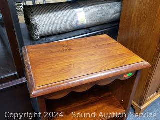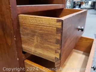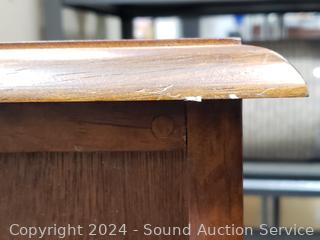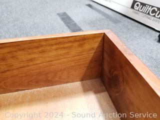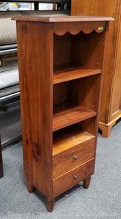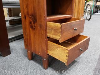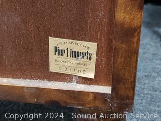 Lot #0209: Pier-1 Medium Finish Wood 2-Drawer Shelving Unit