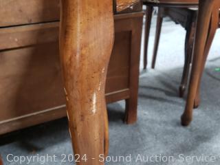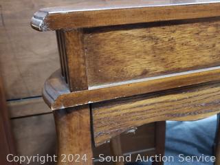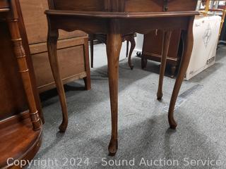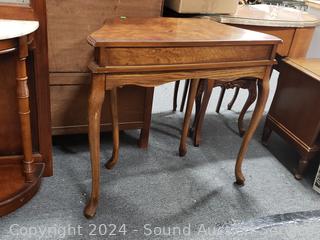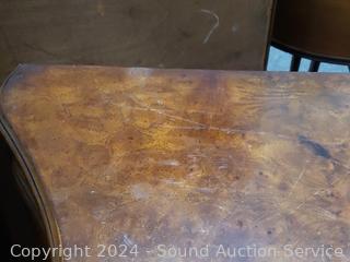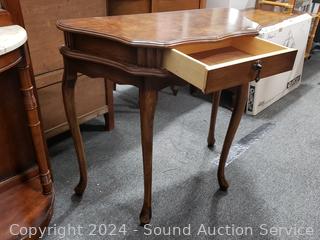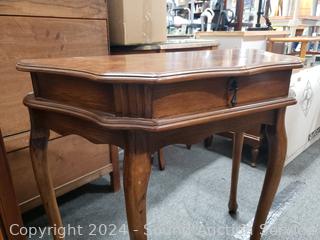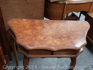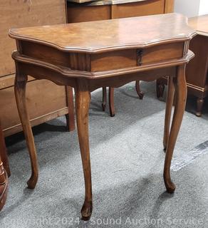 Lot #0017: Vintage Burl Top Single Drawer Hall Table