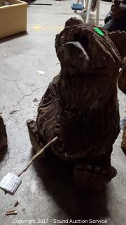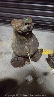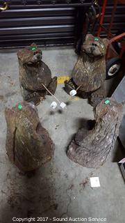 Lot #0033: 4 Chainsaw Carved Bears Roasting Marshmallows