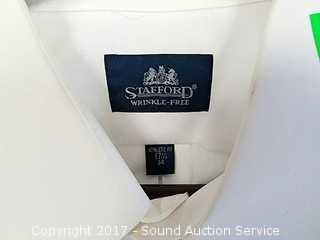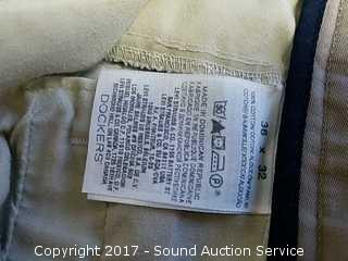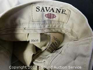 Savane 35/32 beige slacks, Savane 35/32 black slacks, Dockers 36/32 beige slacks and Savane 35/32 beige slacks. Stafford Wrinkle Free Athletic Fit Size 34 shirt.