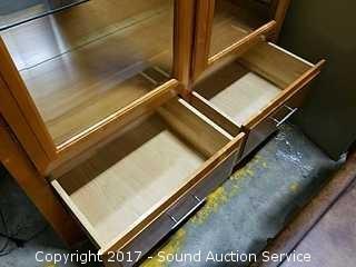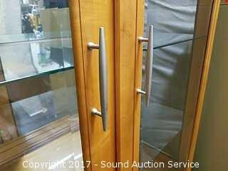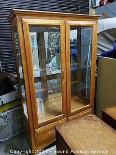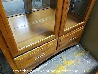 Lot #0005: Beautiful Wood & Glass Lighted China Cabinet