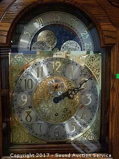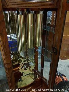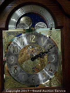 Lot #0157: Howard Miller Solid Oak Pendulum Floor Clock
