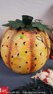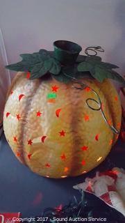 Lot #0058: Lighted Tin Moon & Stars Pumpkin 16" Diameter
