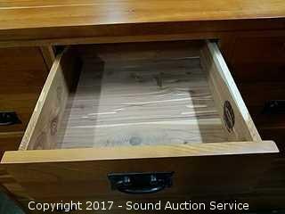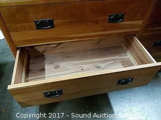 Approx. 44" tall, 56" wide, 19" Deep. with 26.5" x 53" mirror. Cedar Lined, Dovetail constructed, In excellent condition. Made in Grants Pass, Oregon.