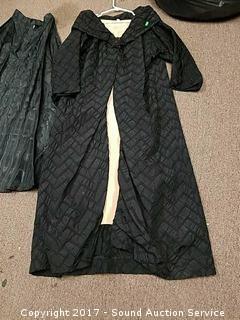 Skirt waist measures 24" and 40.5" in length. Robe/Cloak is marked size 16, and measures 50" long.