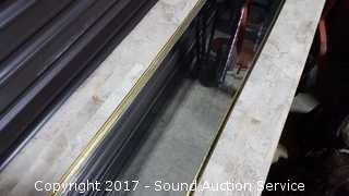 Approx. 58" by 16" by 28". Brass adornments.
