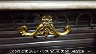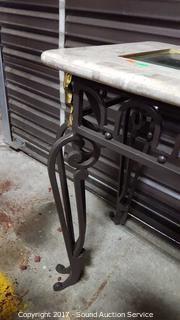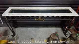 Lot #0032: Wrought Iron, Marble & Glass Top Sofa Table