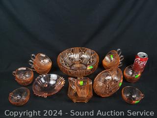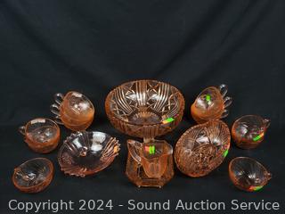 Lot #0100: 17pc Vintage Pink Depression Glassware