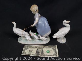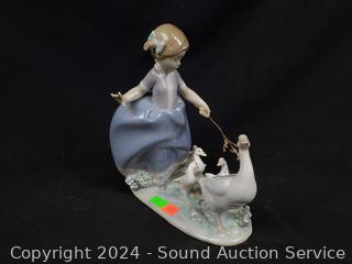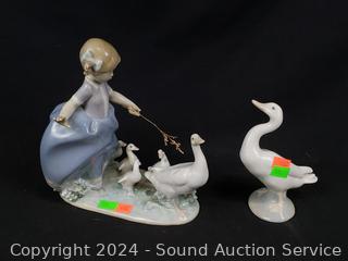 Lot #0120: 2 Lladro Spain Fine Porcelain "Hurry Now" #5503 Geese & Girl Figures