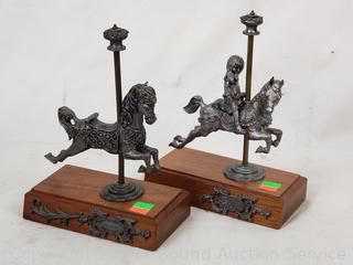 Lot #0156: 2 Michael Ricker Handcrafted Limited Solid Pewter Carousel Sculptures