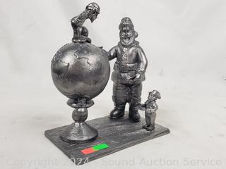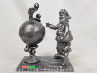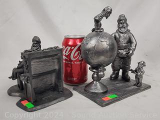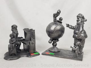 Lot #0152: 2 Michael Ricker Handcrafted Limited Solid Pewter Santa Sculptures