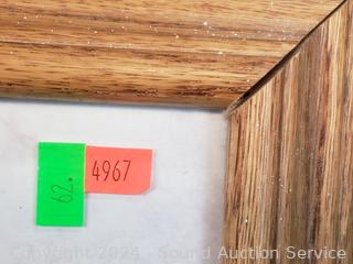 "Hollyhock House" & "Lilac Gazebo", oak framed, matted with glass. Approx. 20.5" x 22.5".