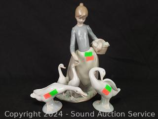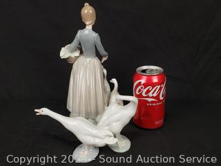 Lot #0077: 3 Lladro Spain Fine Porcelain Geese & Girl Figures