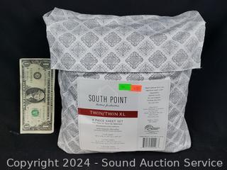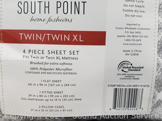 Lot #0184: 4pc South Point Twin/XL Stamp Medallion Gray Sheet Set