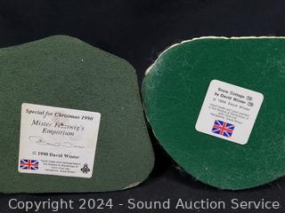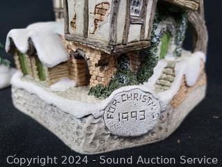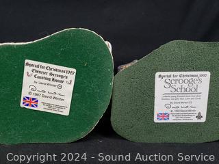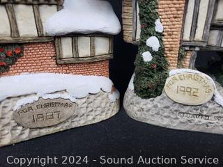 1984 "Snow Cottage", 1992 "Scrooges School", 1990 "Mister Fezziwig's Emporium", 1993 "Old Joe's Beetling Shop", 1987 "Ebenezer's Scrooges Counting House" & Tree. Up to 11" tall. Don't see any issues.