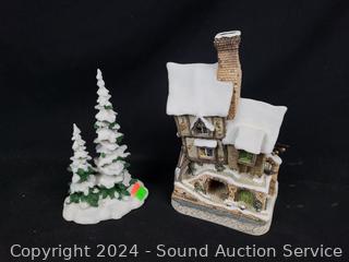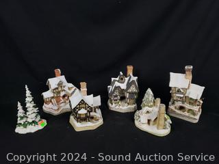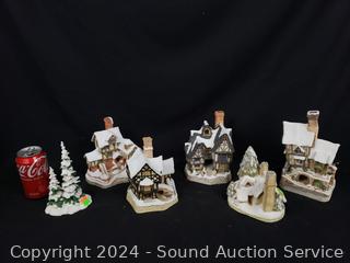 Lot #0111: 5 David Winter Porcelain Cottages & Tree