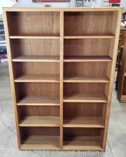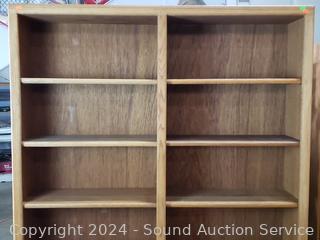 Lot #0027: 6-Tier Oak Finish Side-by-Side Bookcase
