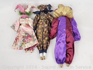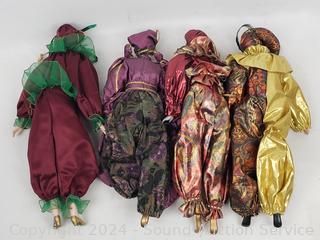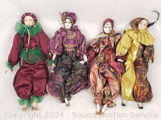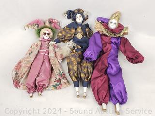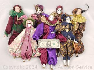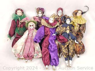 Lot #0085:     7 Porcelain Cloth Body Clown/Jester Dolls