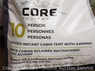 Lot #0232: Core Equipment 10 Person Lighted Instant Cabin Tent w/Awning