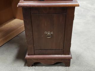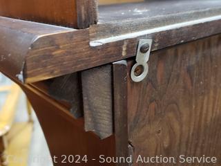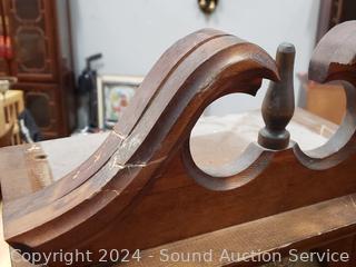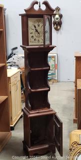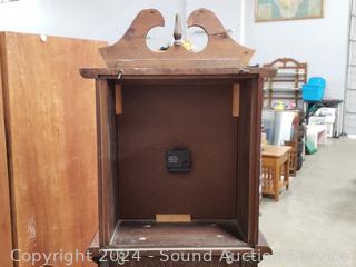 Clock is not functioning, battery housing is rusted out and needs replacement. Overall 72" x 14.5" x 11".
