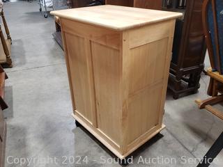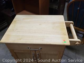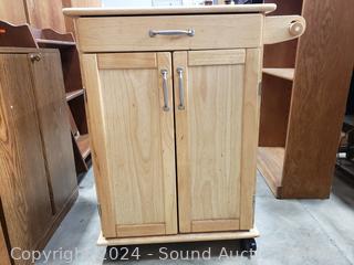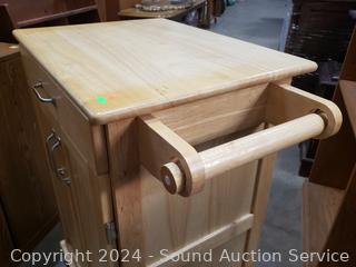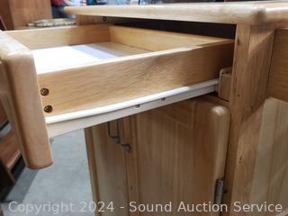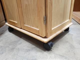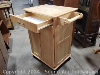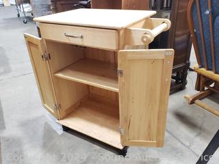 Lot #0013: Natural Wood Finish Rolling Kitchen Island Cart