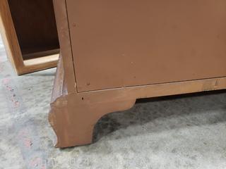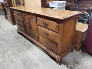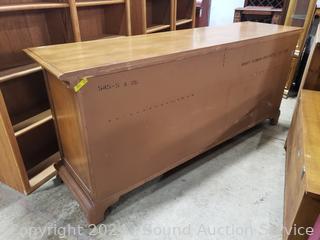 A few minor scuffs, overall great condition. Appears to be all wood construction with dovetail joinery. 33.5" H x 76" W x 21" D.