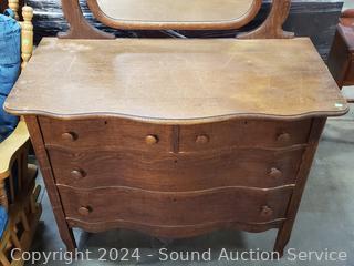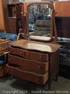 Lot #0003: Vintage Serpentine Front 4-Drawer Vanity Dresser