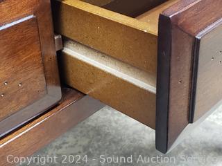 One drawer pull is broken, needs replaced, otherwise in great cosmetic condition. 29" H x 36" W x 13" D.