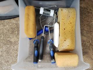(2) 24" H x 12.5" W x 14.5" D, (1) 31.5" H x 21.5" W x 15" D. With some paint brushes, rollers, sanding paper. Refer to photo for more details.