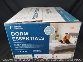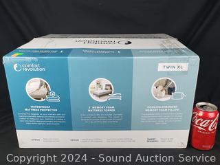 Lot #0305: 3pc Dorm Essentials TwinXL Memory Foam Pillow 2" Topper & Mattress Protector