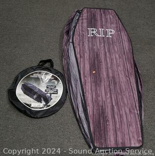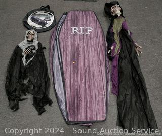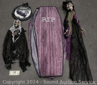 Lot #0204: 5ft Hanging Skull Witch, Instant Coffin