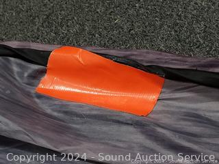 Supposed to have lights, couldn't get them to work. Coffin has a small rip in seam.
