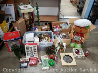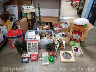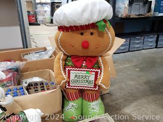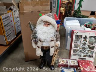 Old World Santa, Fabric Mache Santa, Ornaments, Gingerbread 29" Doll, various other decor. Refer to photos for more details.