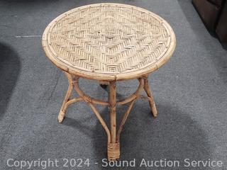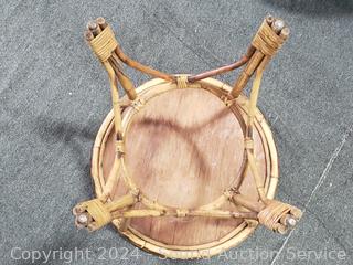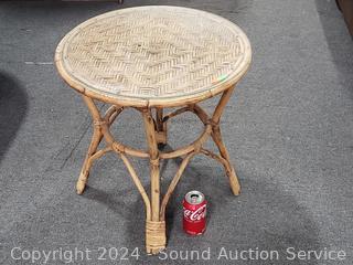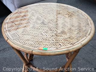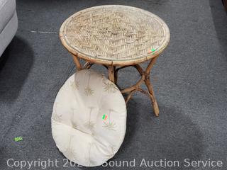 Lot #0034: Distressed Bamboo Glass Top Accent Table w/Chair Pad