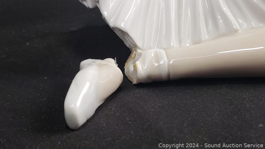 Both have damage, ballerina is missing a foot & bird is broken off the branch. Comes with the pieces. Approx. 9.5" tall & 9" x 15".