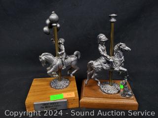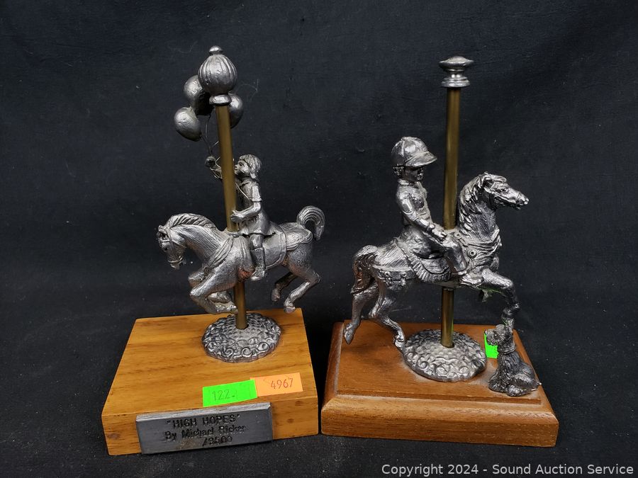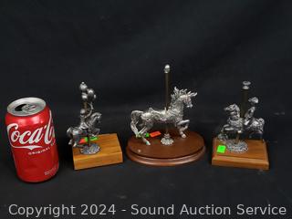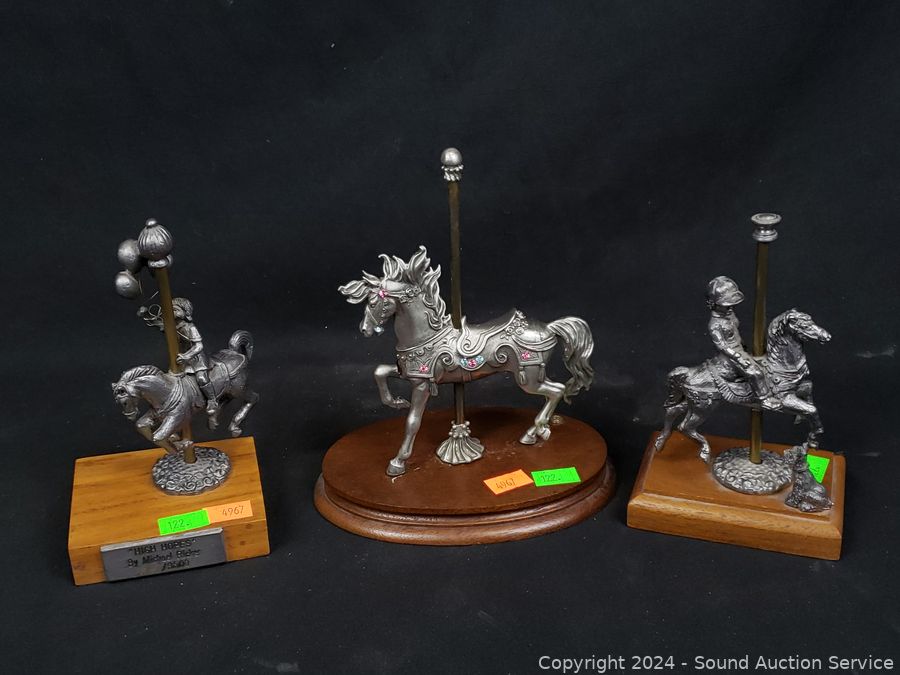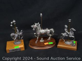Lot #0122: 2 Michael Ricker & 1 Chillmark Solid Pewter Carousel Sculptures
