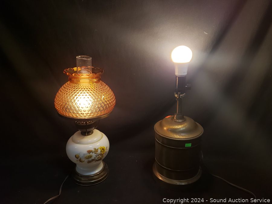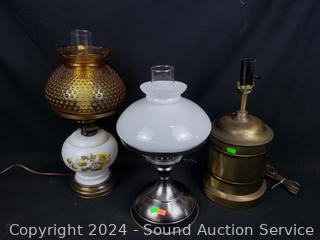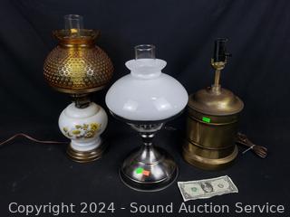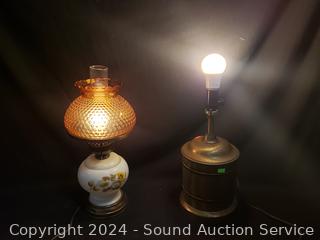 Lot #0200: 2 Vintage Electric Lamps & Oil Lamp
