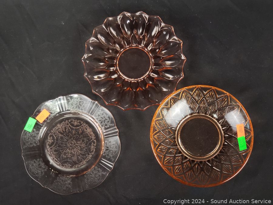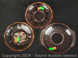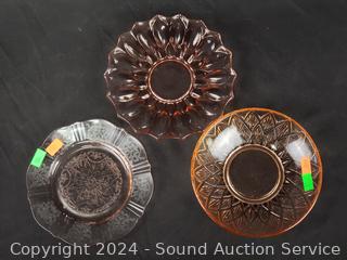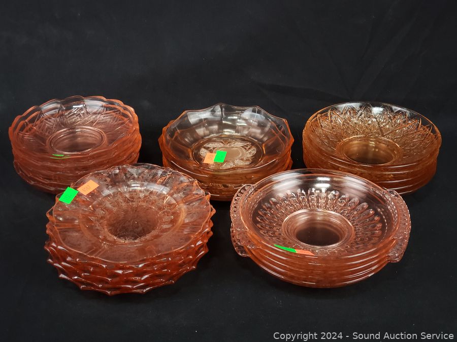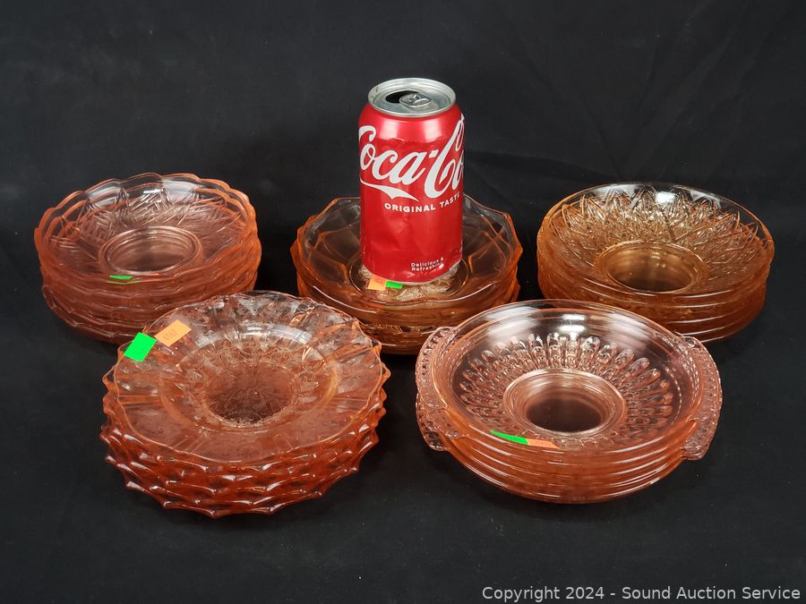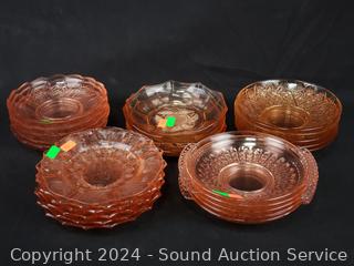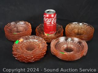 Lot #0182: 25pc Pink Glassware Snack Plates, Bowls