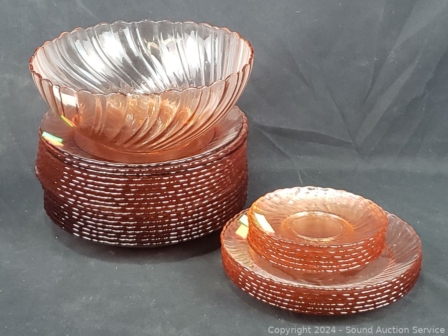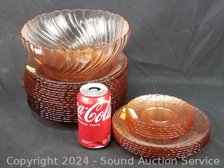 Lot #0178: 31pc Vintage Pink Scalloped Dish Set