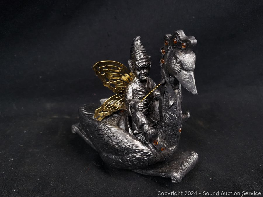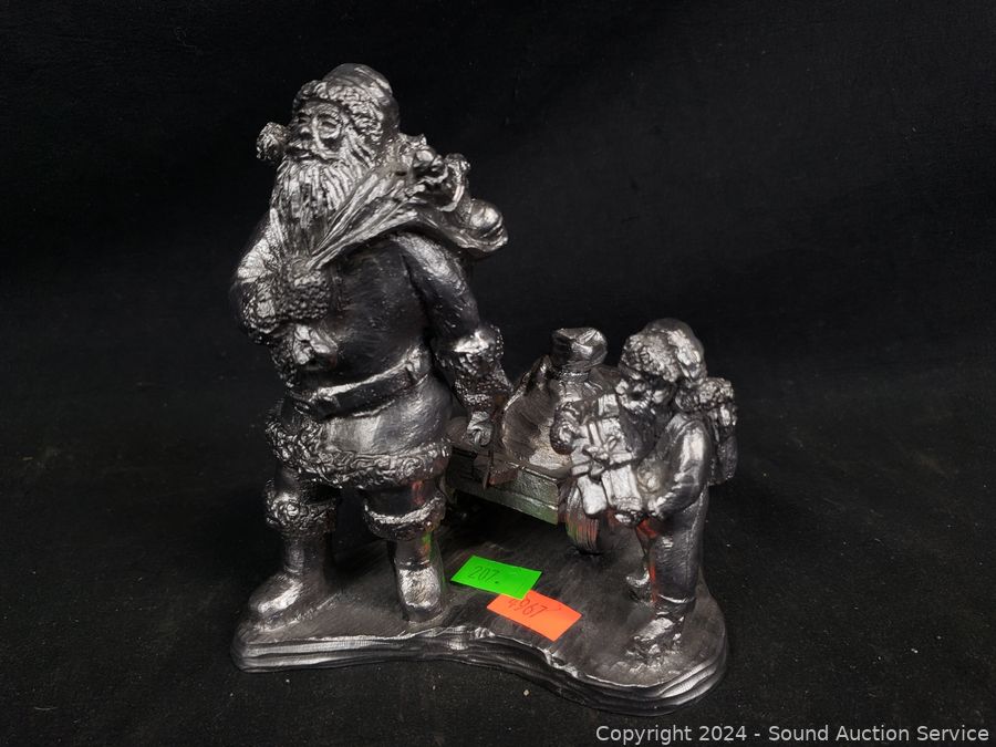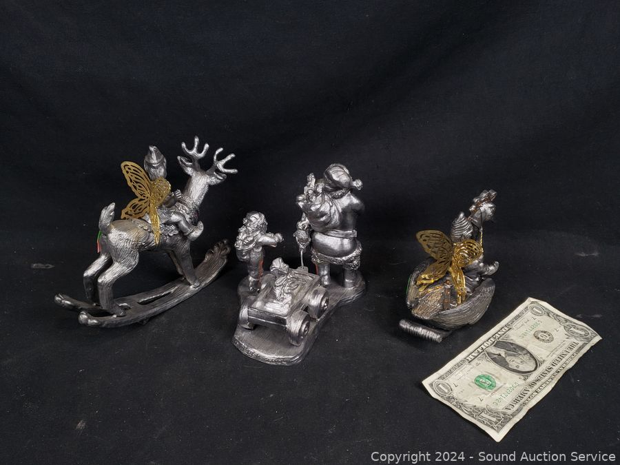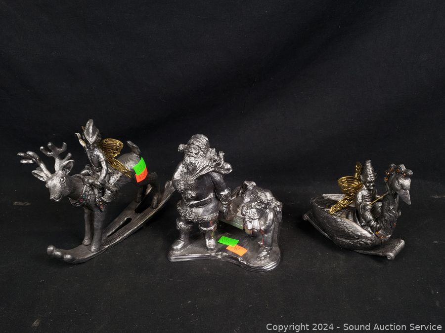 Lot #0207: 3pc Michael Ricker Fairy & Santa Solid Pewter Sculptures