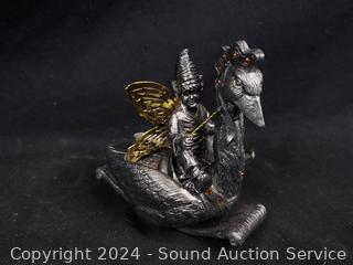 2005 Santa w/Cart of Toys #25/1000, 1995 Fairy in Swan #155/300 & 1994 Fairy on Reindeer w/Ski's #22/750. Approx. 4.25" to 5.5" tall.