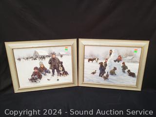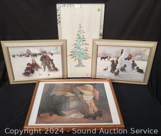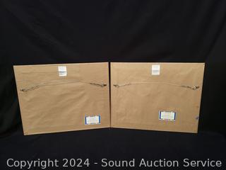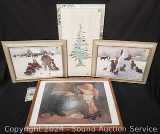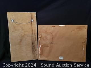One piece is metal art on tile mounted to a piece of wood. Refer to photos for signatures and more information. (2) 20" x 15.5", 25.5" x 14" and 19" x 25.5".