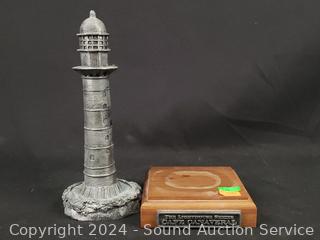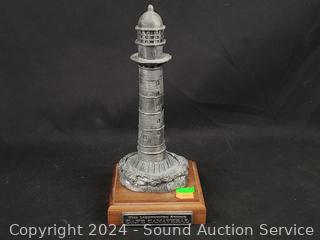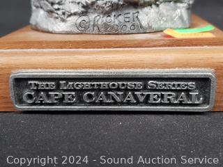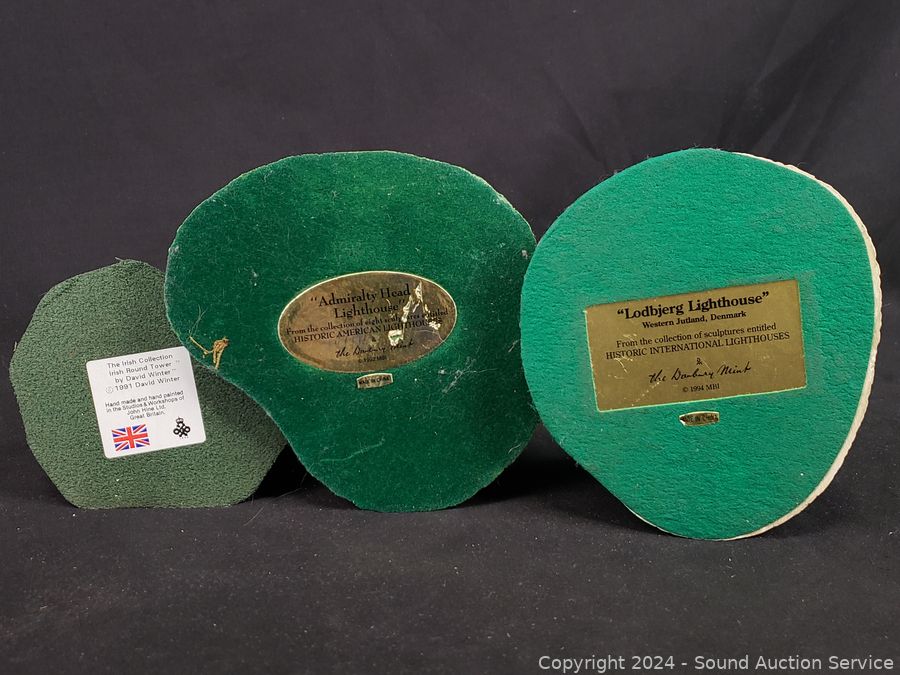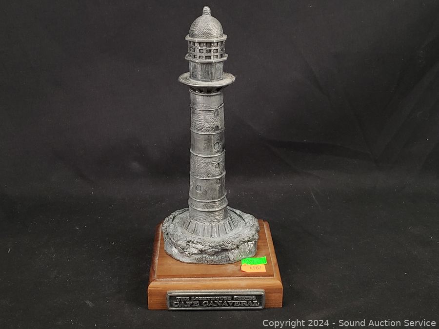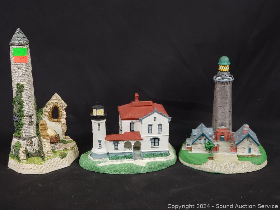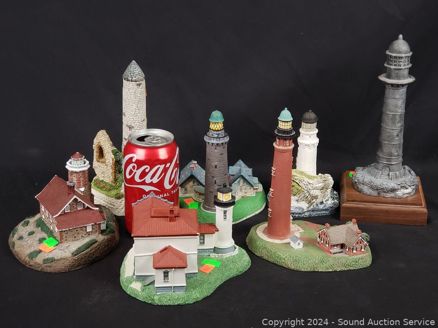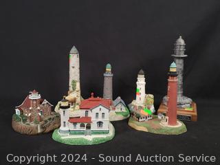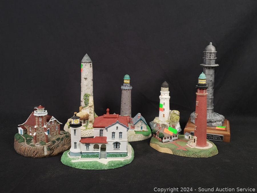 1 is Michael Ricker solid pewter "Cape Canaveral" #145/1000 (not attached to base), 1994 Danbury Mint "Passage Island Lighthouse", Fraser Creations Hand Made in Scotland, 1992 "Admiralty Head Lighthouse", 1991 David Winter "Irish Round Tower", 1994 Danbury Mint "Lodbjerg Lighthouse", Danbury Mint "Ponce De Leon Lighthouse". Approx. 4" to 9" tall.