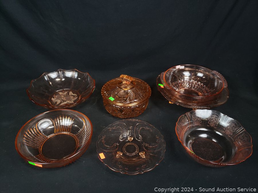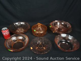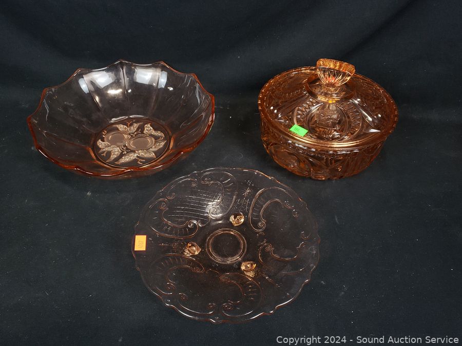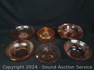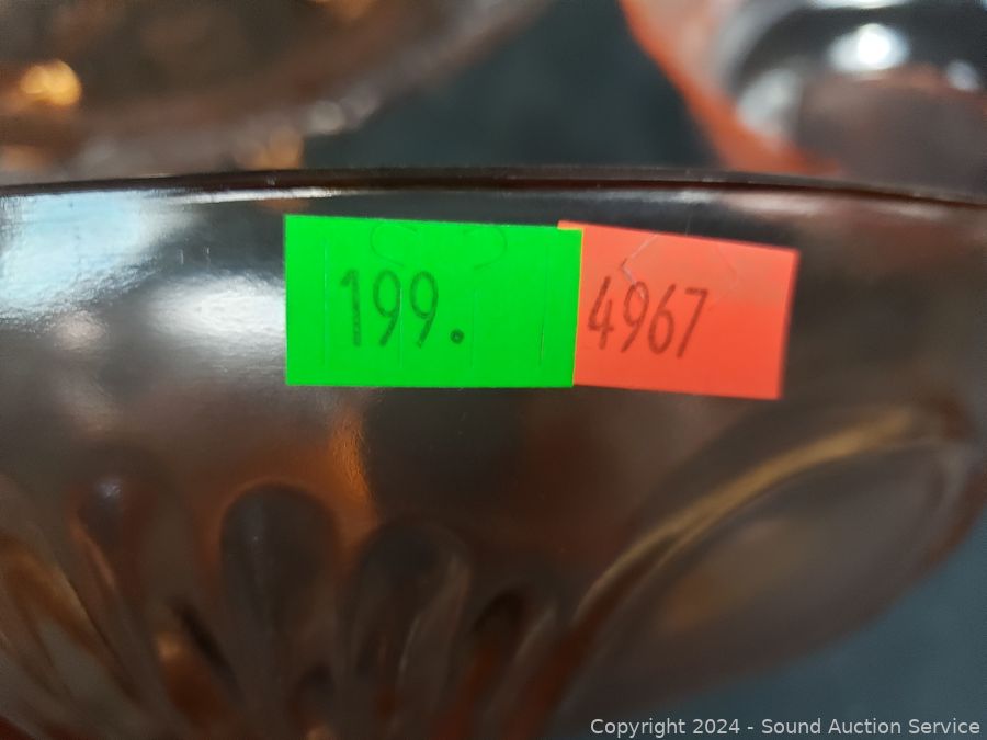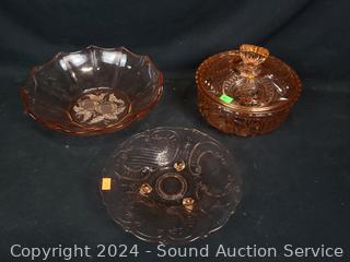 Lot #0199: 7pc Pink Glassware Table & Service Ware