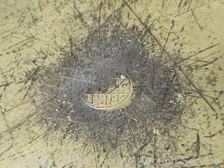 Has a crack. 10.75" H x 9.5" Dia. Some scuffs, wear to finish.