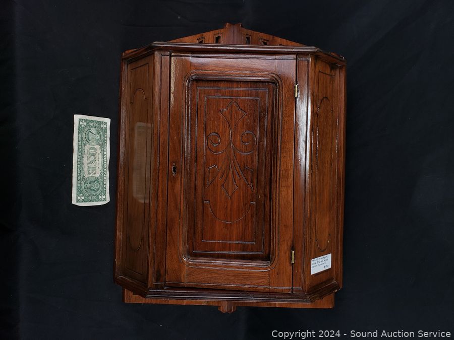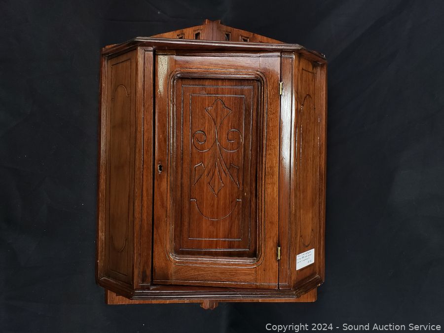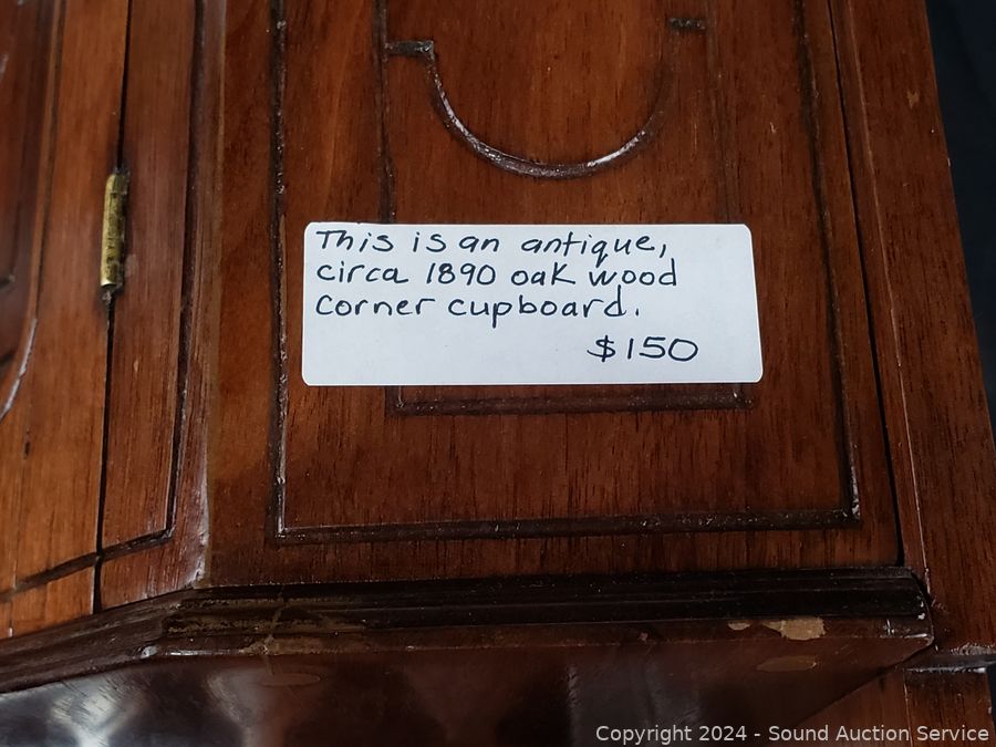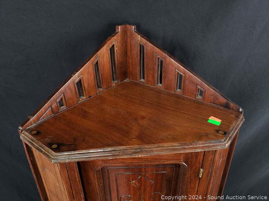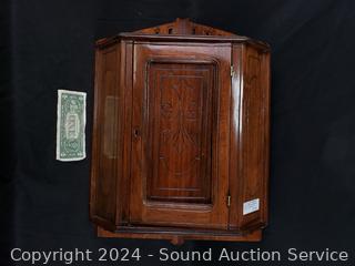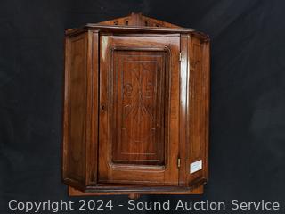 Lot #0007: Antique C. 1890 Oak Wood Corner Cupboard