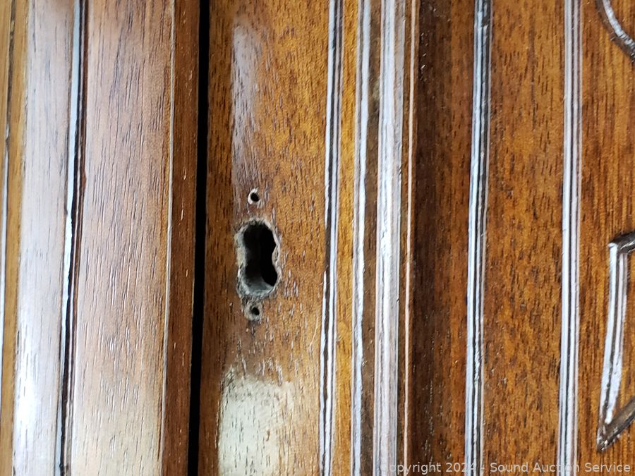 307 Lots including Gray Fabric Pullout Hide-A-Bed Sofa, Antique Dark Finish Oak Ornate Dutch Cupboard, Thomasville Founders Burl Elm Wood Hutch & Dining Table, 1937 Original Kammerer Black Forest Cuckoo Clock, Antique Coal Scuttle, Handcrafted Amish Style Cherry Wood Cradle w/Storage, Aladdin Brass Oil Lamp, Antique Oak Drop Front Writing Desk, Antique Coal Iron, Duncan Phyfe Mahogany Dining Table, Michael Ricker Signed/Numbered Pewter Sculptures, David Winter Cottages, Commodore Computers, "N" Scale Trains/Track/Accessories, Pink Glassware, Fine China Dish Sets, Music CD's, Records, Electronics & Much More!!!